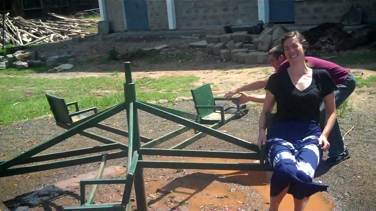 We laugh all the time here at the kids when they talk. It is pretty normal here for the children to yell and point at another person's face. They use their entire hand instead of a finger though, and yell "WEWE!" Wewe translates to "HEY YOU" in English. If you just sit down and watch a group of kid, you can bet someone will point and yell WEWE at somebody. A lot of times they just point and talk but still are yelling. We don't necessarily know what they're saying, they could be saying, "Stop that" or "What are you doing" or even "Hey thanks for passing the dinner plate". We think it's funny because they point and talk about anything so we point, yell, and say very positive remarks to each other. So in this picture Gil and Katie and doing it to each other.